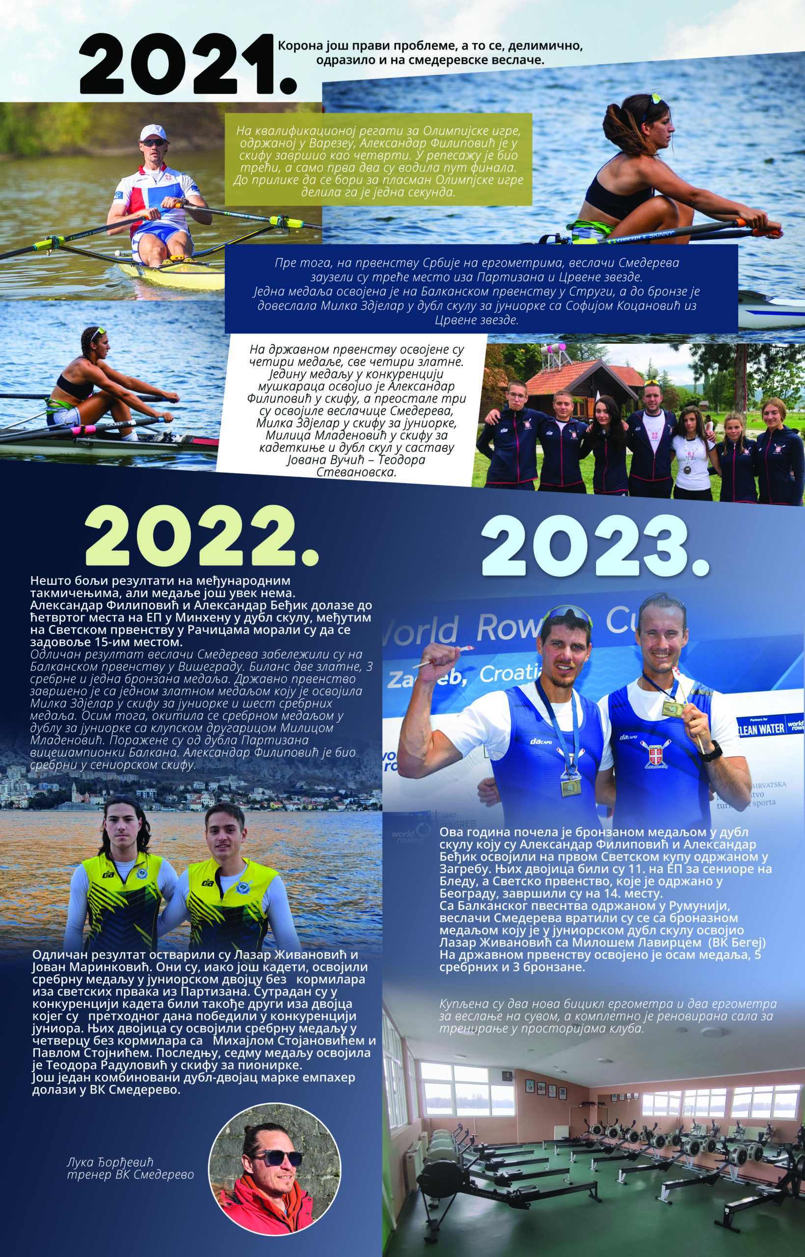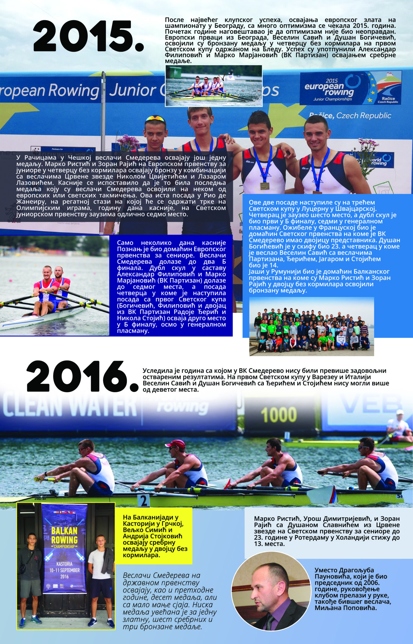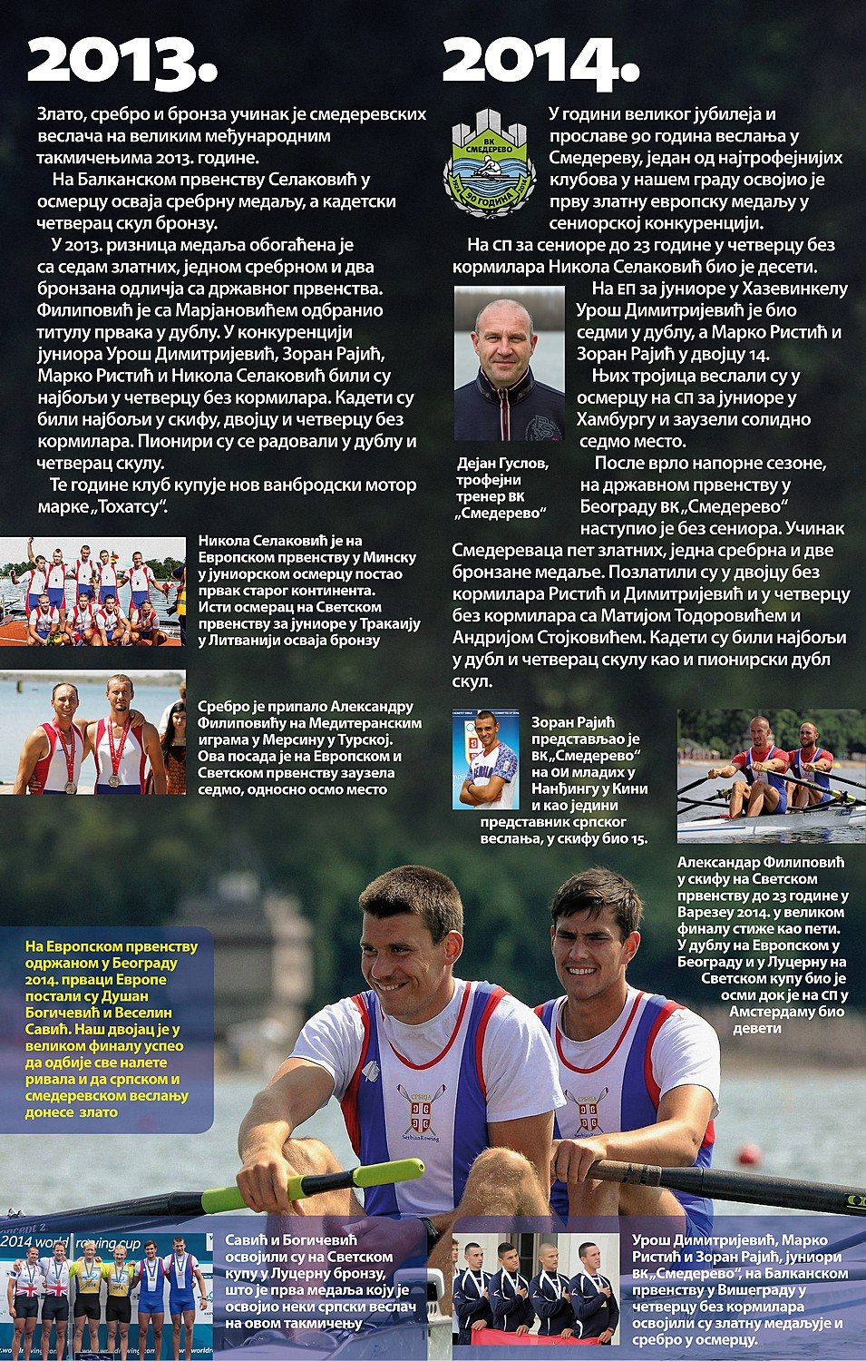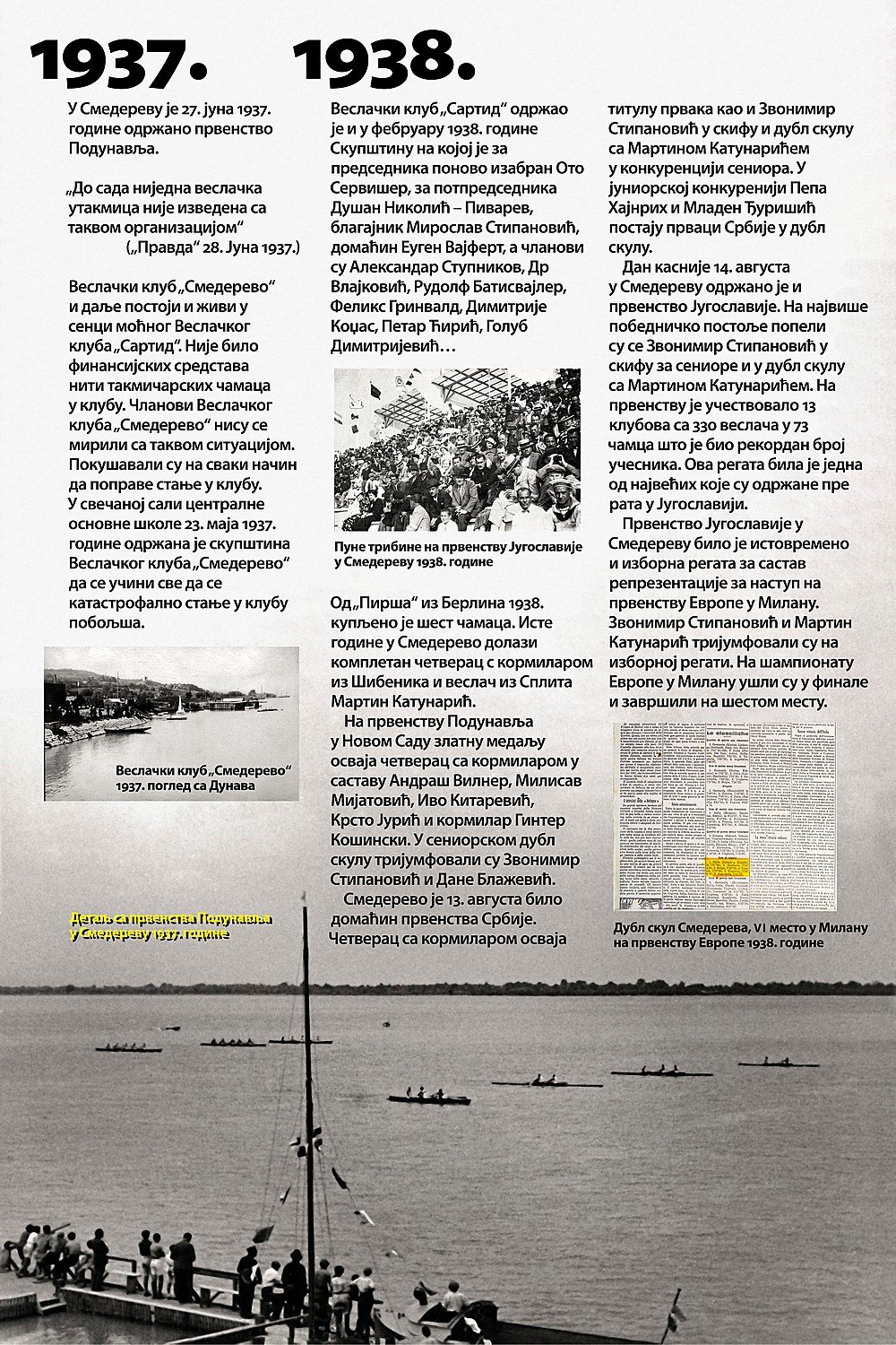 Čitav vek je iza nas. Za to vreme smo osvojilo nebrojeno medalja, pehara, ostvarili uspehe na domaćoj i inostranoj sceni, bili učesnici najbitnijih veslačkih dešavanja širom sveta i ostvarili nebrojeno mnogo prijateljstava. Priča o našem veslačkom klubu je priča od ljubavi, prijateljstvu i nereaskidivoj vezi Smedereva i Dunava!